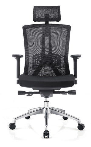 This sleek and modern design features a breathable mesh back to support natural spine alignment and a black fabric seat for added comfort. Mounted on a heavy-duty, 5-star metal base with soft wheel castors, the Truman office chair is suitable for both carpeted floors and hard surfaces.