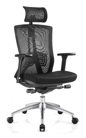 Featuring gas lift height adjustability, synchronised back and seat tilt, adjustable lumbar support and adjustable headrest and arm rests (armrests sold separately), the Truman office chair provides extensive tailored support for your posture and position throughout the day