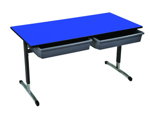 Large tote trays with drop front. Double desk: W1200 x D600mm.